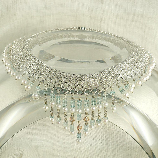 Aquamarine, Pearl, 18K Gold and Sterling Wedding Necklace