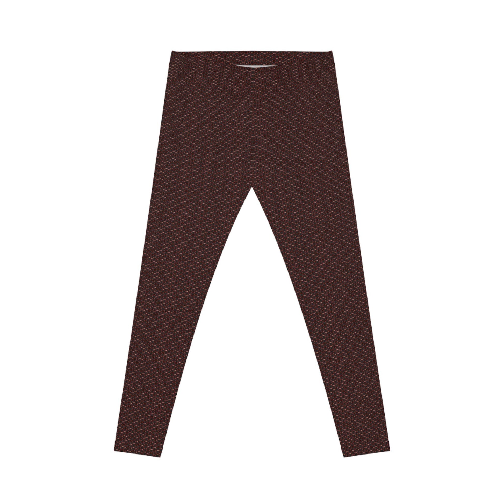 These deep-red chainmaille patterned leggings bring a bold, tactile edge to everyday wear. The scaled, interlocking motif wraps the legs in a rich, armor-like texture that reads modern and slightly medieval—perfect for someone who blends city style with a touch of fantasy. They sit comfortably at a mid-rise waist with a thin elastic band, offering a casual silhouette that moves with you. The fabric’s silky finish highlights the crimson tones and detailed pattern, letting the chainmaille design pop whether you’re layering under a longline sweater for a market day or pairing with a moto jacket for an evening out. Soft, stretchy, and vivid, they hold their shape through the day and feel smooth against the skin. Wear them on chilly festival nights, for urban wandering, or when you want your outfit to hint at strength and story.