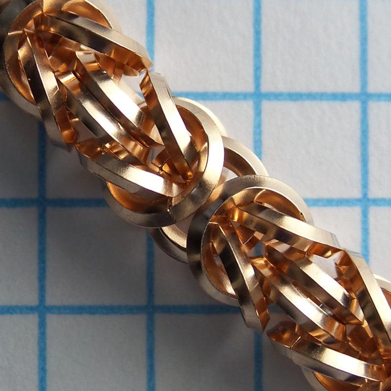 Byzantine Chain introduces the concept of folding rings and locking them in place in a pattern, thereby teaching the second foundational skill a mailler needs, right after the ability to close rings perfectly.
