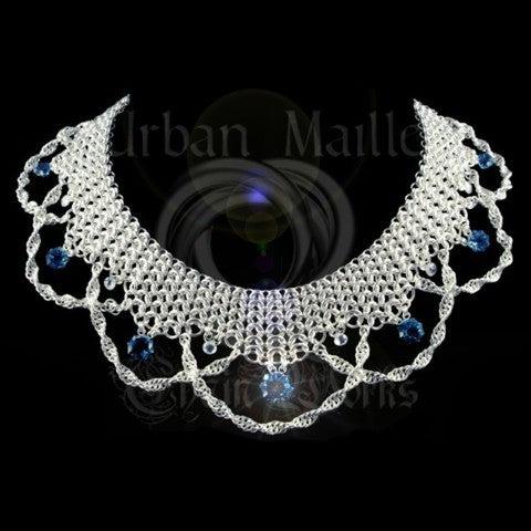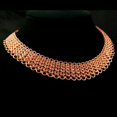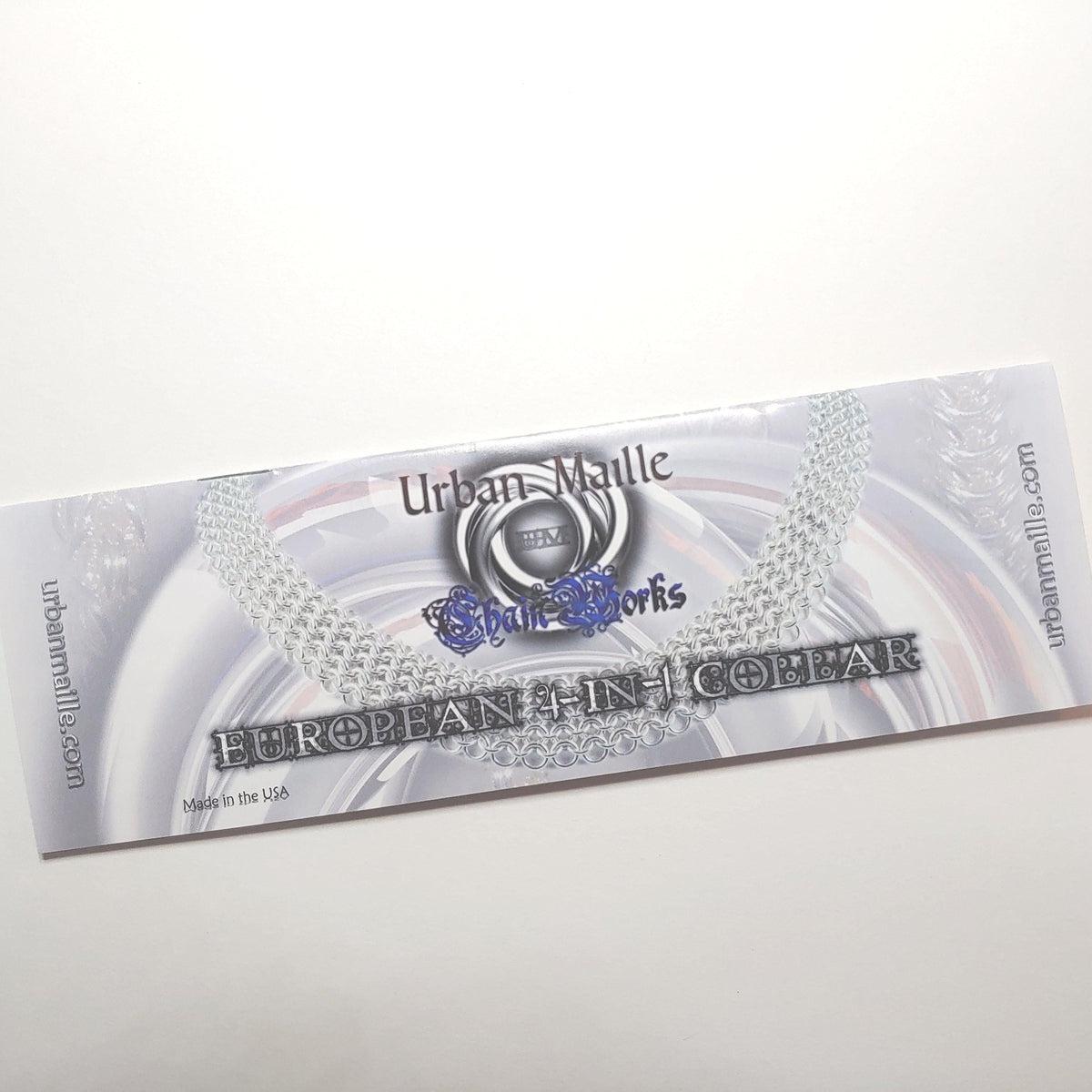 European 4-in-1 is a sheet weave and so lends itself naturally to making squares, rectangles, triangles and ribbons. Ribbon shapes make excellent bracelets, but not such nice necklaces unless the necklace is a choker, worn high on the throat. European 4-in-1 doesn't curve without bunching, so you generally don't see smooth collars made of it. It's a beautiful weave for a collar, though, so we've spent weeks working out a European 4-in-1 pattern that curves like a dream. It's beautiful on its own, but the possibilities for embellishment are endless. This kit contains ten ring sizes and weighs over 5 troy ounces. Though it's a substantial and ambitious project, it's really not difficult to put together as long as you're comfortable weaving European 4-in-1.